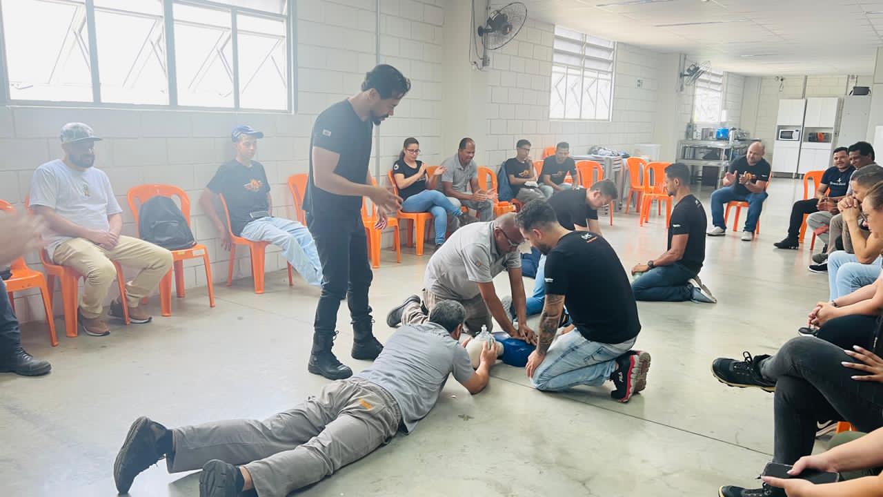 Durante o treinamento, foram abordados temas essenciais como o uso correto de extintores, técnicas adequadas para combate a princípios de incêndio e procedimentos de evacuação. Além disso, os colaboradores receberam orientações sobre atendimento pré-hospitalar, aprendendo como agir em casos de convulsão, parada cardiorrespiratória e outras situações que exigem resposta imediata.